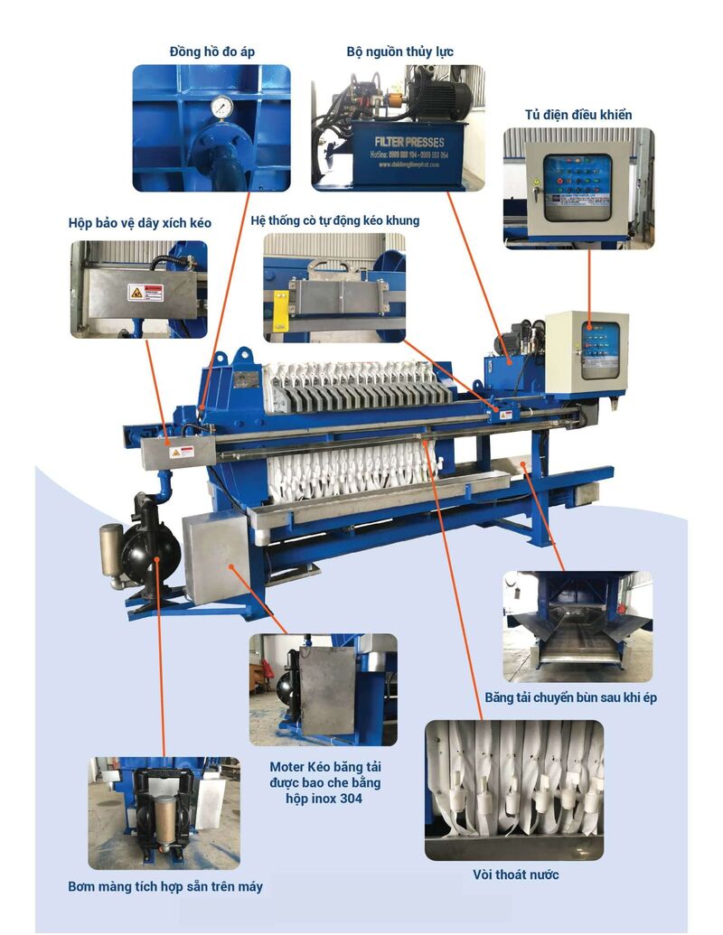 Máy ép bùn khung bản có thể xử lý nhiều loại màng lọc khác nhau, tuy nhiên các tấm màng lọc, vải lọc cần được theo dõi và thay thế định dạng kỳ.
